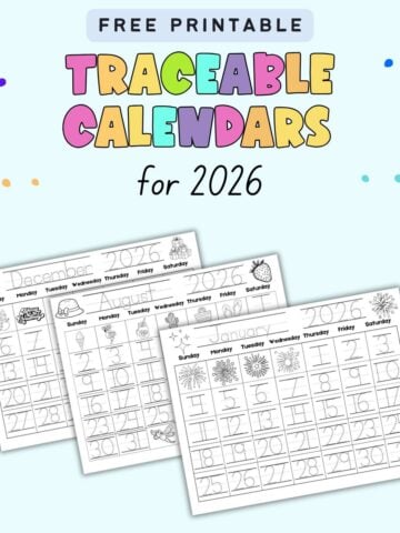 Free Printable Traceable Calendars for Kids