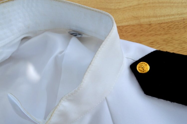 In addition to using Fels-Naptha to treat and remove stains, you can also use it as laundry soap or a laundry soap enhancer. When I used in the washing machine, I just used a little kitchen plane grater to put some directly in with the laundry. I thought about writing my clean towel experience using Fels-Naptha, but I figured that spot cleaning dress whites was more exciting and practical. Have you see how much it costs to dry clean a suit or a uniform? (For the record, though, I used only Fels-Naptha to clean a white towel that had post-beach sunscreen grime on it and everything came off.)