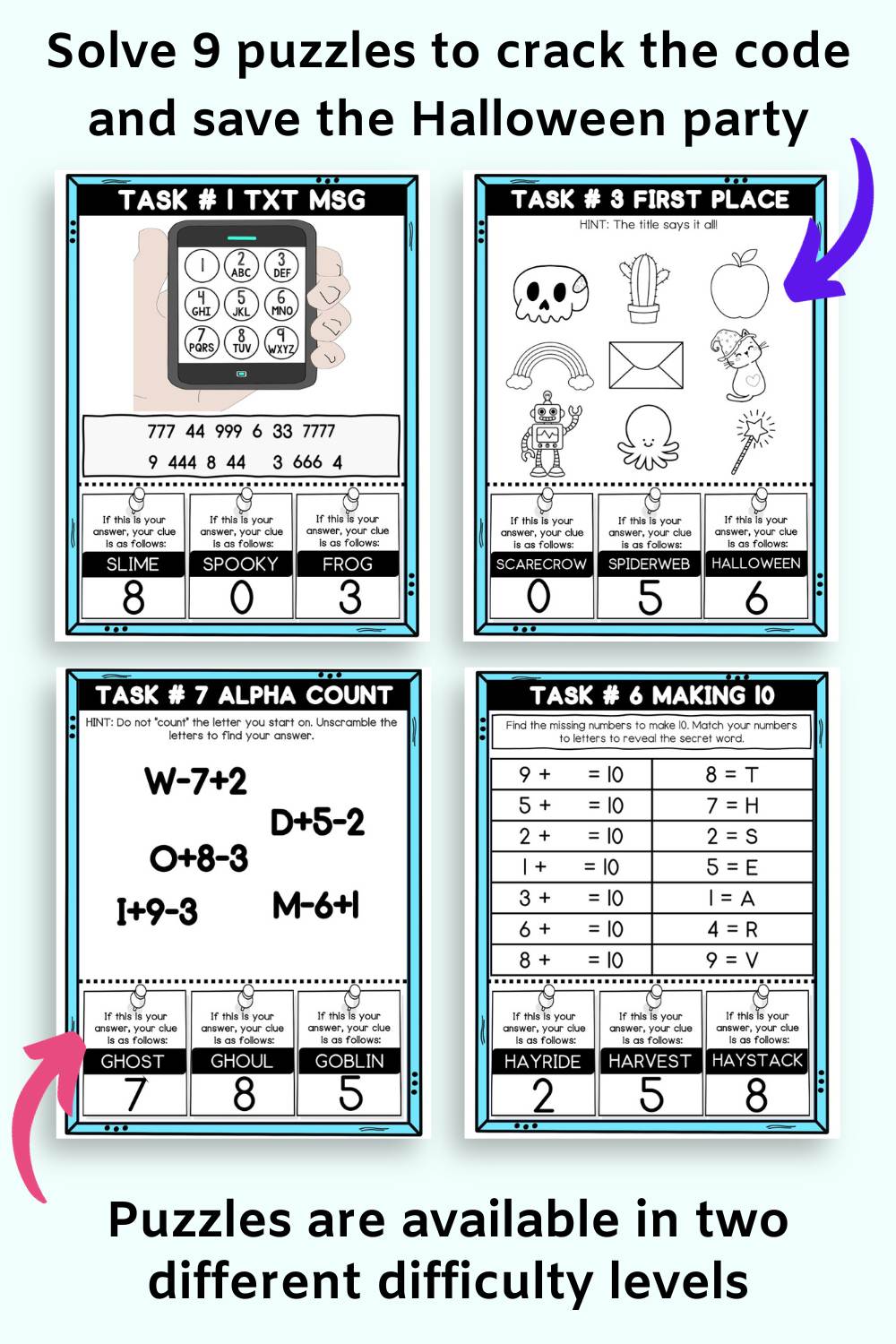 Can you help them crack the code in time to save the Halloween party?
