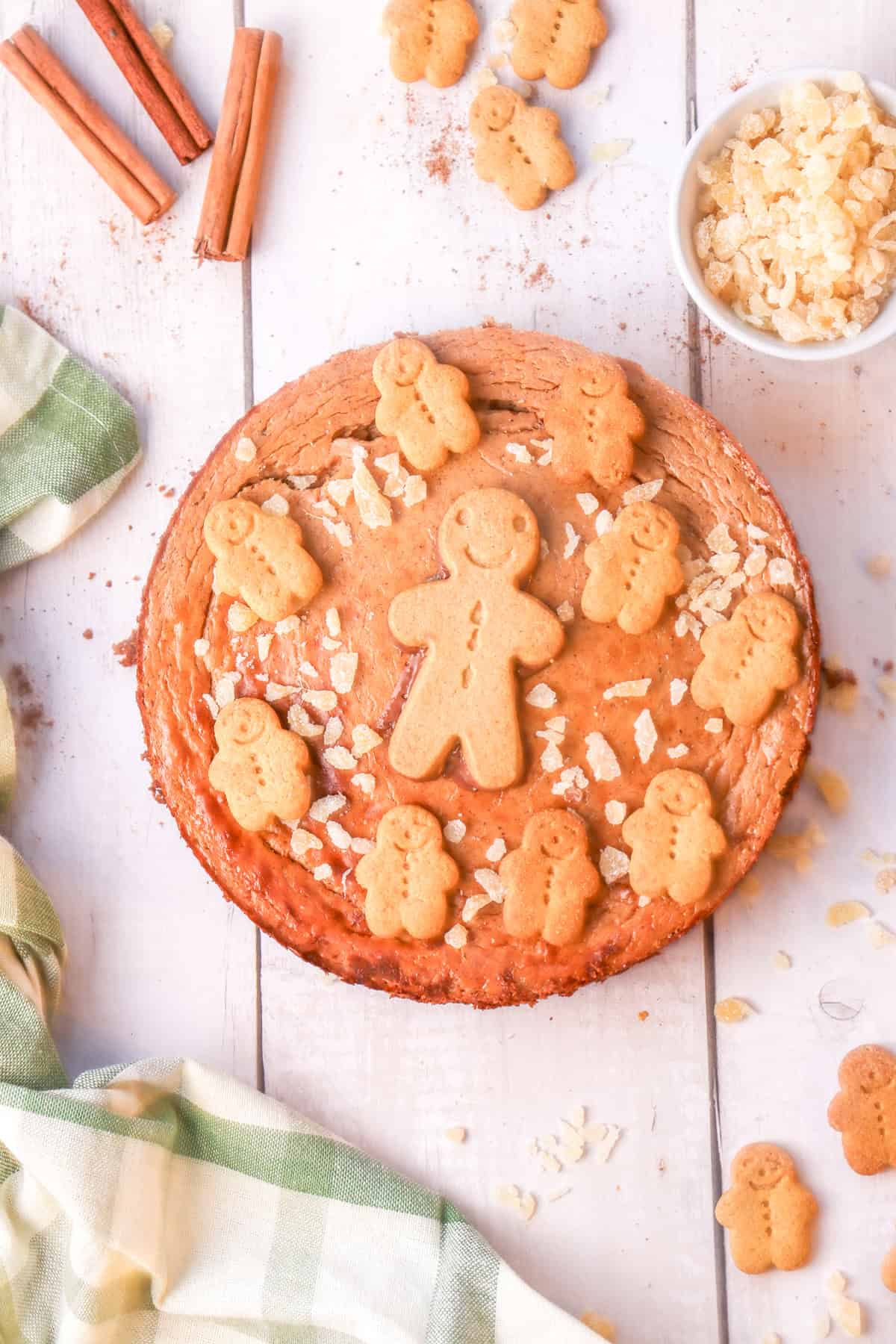 Top your cheesecake with mini gingerbread man cookies arranged around the edges. This is optional, but sure to delight your kiddos!