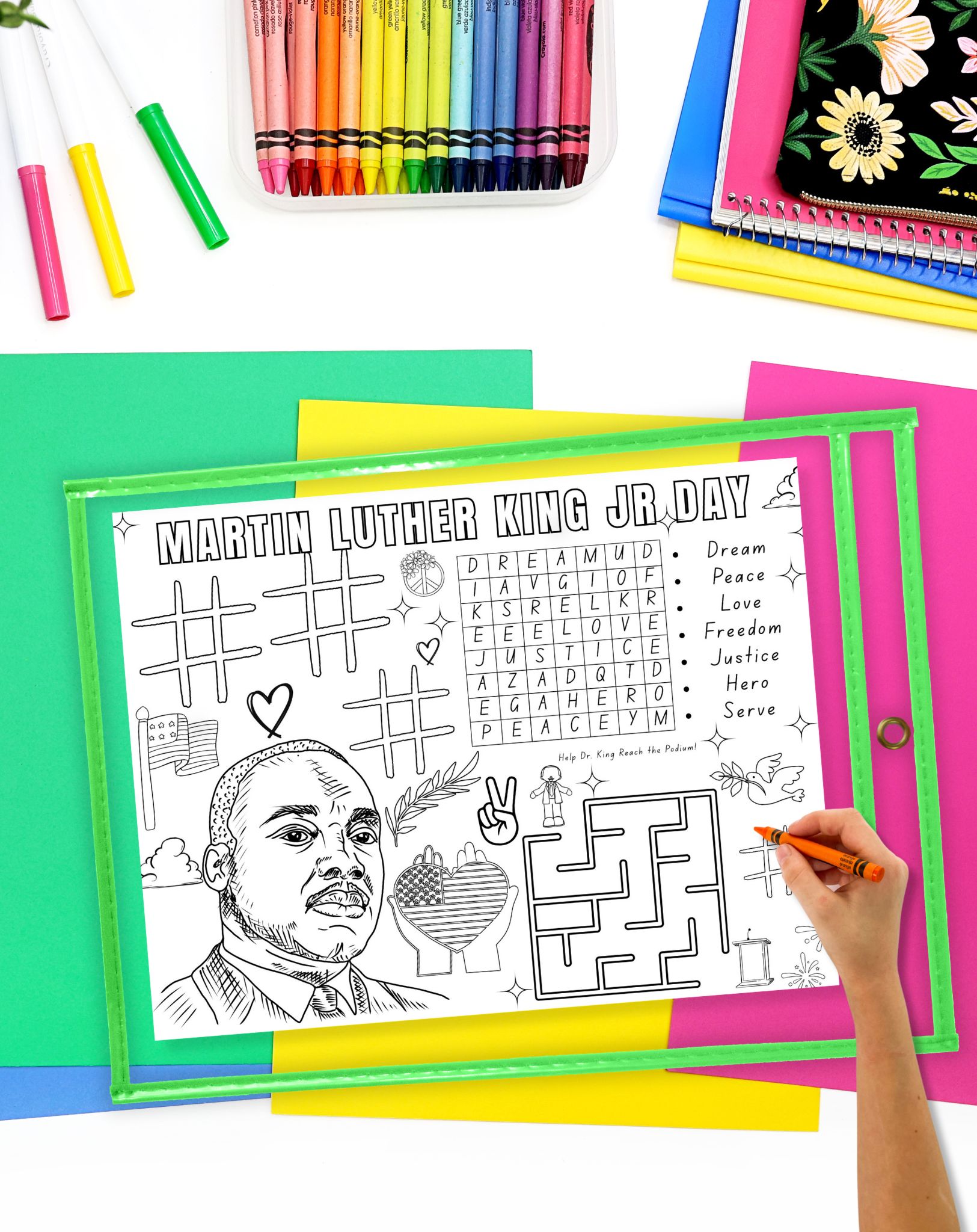 Your PDF file includes five different Martin Luther King Jr themed placemat designs Pick your favorite ones to print, or print them all and let the kids at your holiday gathering select which ones they want to use!