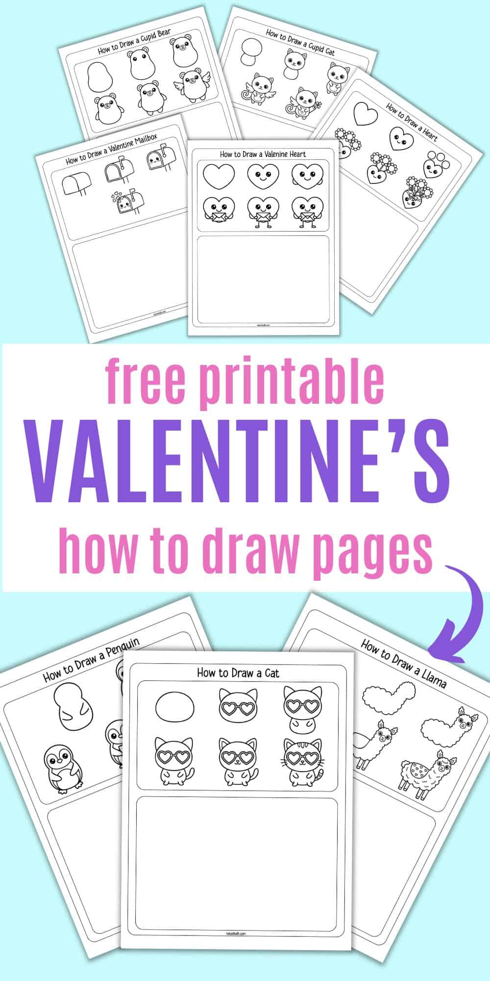 These free printable how to draw Valentine's Day characters step by step worksheets are perfect for kids of all ages! They also work really well to decorate your bujo. Pick from twelve different cute how to draw a Valentines pages - free!